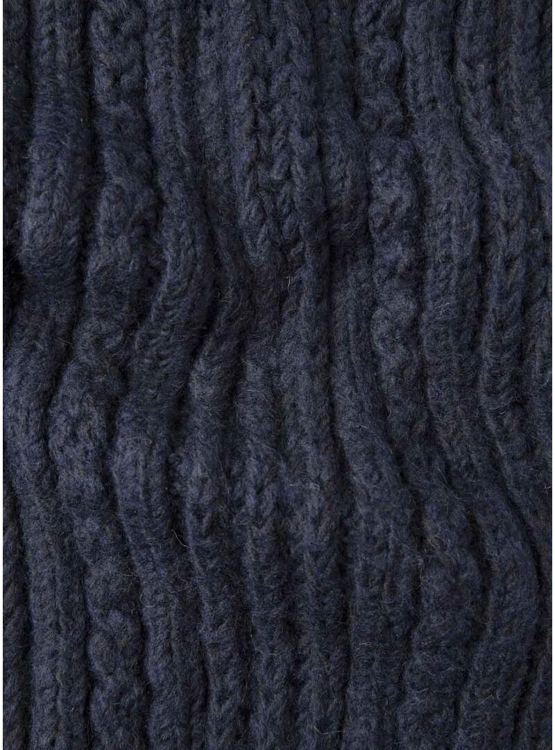 Sciarpa Pepe Jeans. Modello Skyler. Colore blu scuro. Taglio rettangolare. Tessuto a coste. Etichetta del marchio in basso.