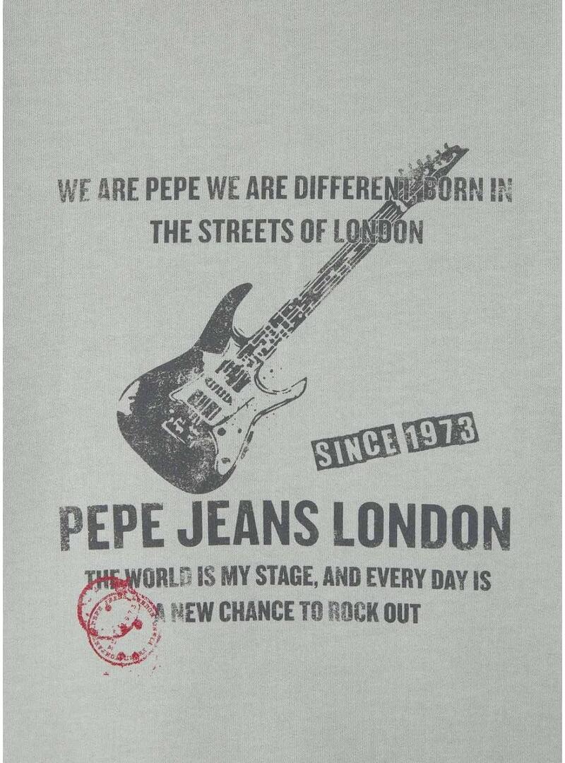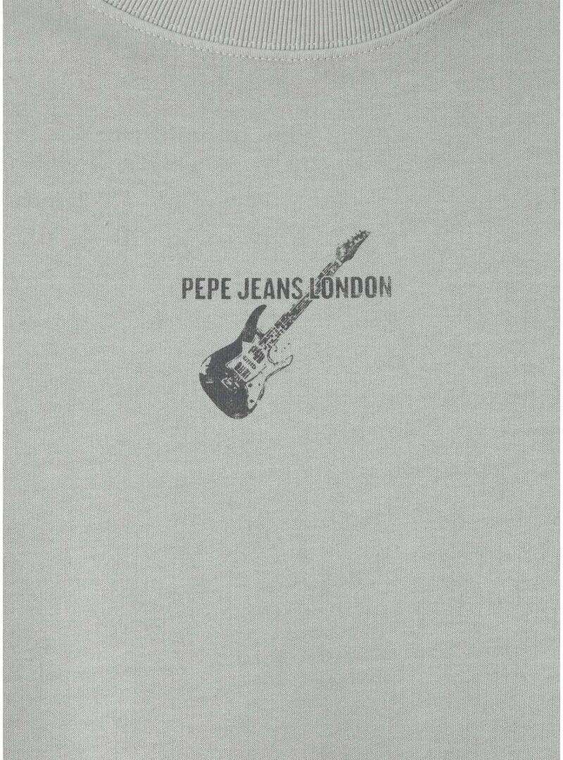 Felpa Pepe Jeans. Modello Gyo. Colore grigio. Collo rotondo. Manica lunga. Estremità elastiche. Taglio regolare. Illustrazione chitarra stampata sul petto e sulla schiena.
