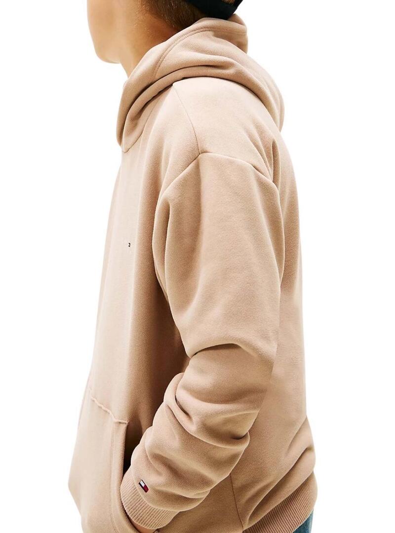 Felpa Tommy Hilfiger. Modello Mini Corp. Colore beige. Con cappuccio. Orli a costine. Vestibilità leggermente oversize. Logo stampato sul petto. Tasca a marsupio. Spalle cadenti. Bandiera ricamata sulla manica.