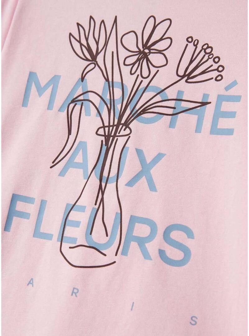 Maglietta Name It. Modello Foslina. Colore rosa. Collo rotondo. Manica lunga. Vestibilità regolare. Fiore stampato sul petto. Illustrazione stampata sulla schiena.