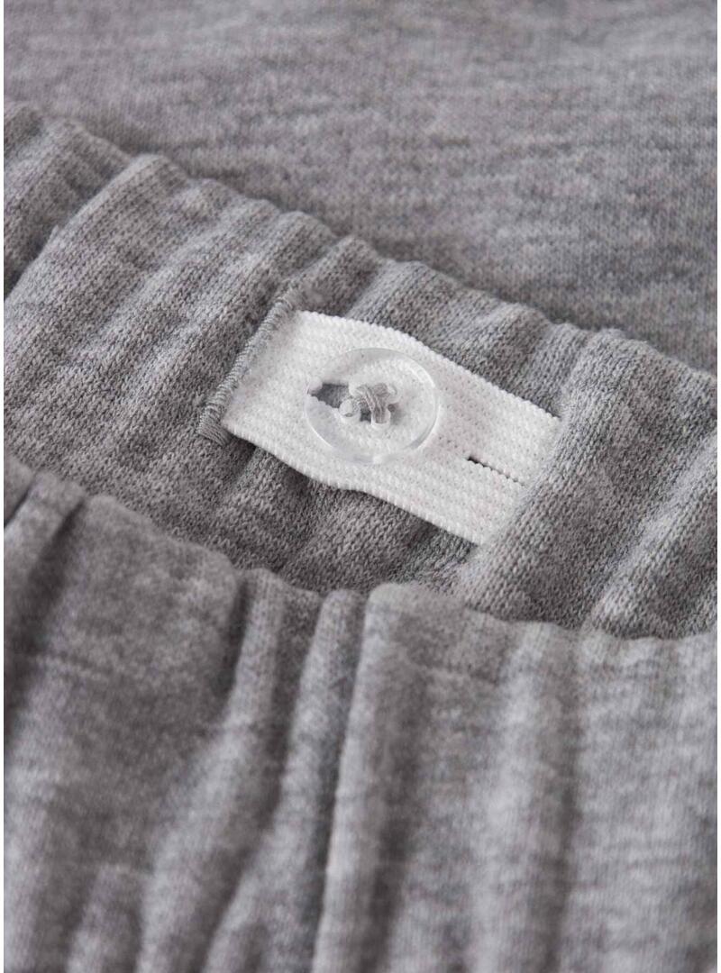 Pantaloni da tuta Name It. Modello Fofina. Colore grigio mélange. Stile jogger. Vita elasticizzata regolabile con cordoncino esterno e elastico interno. Illustrazione minimalista stampata sull'anca. Taglio regolare. Fondo elasticizzato.