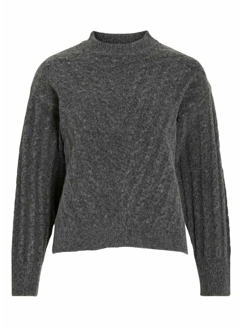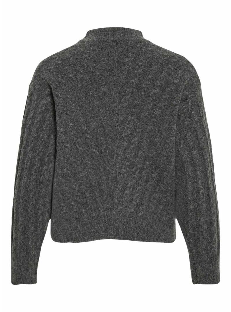 Maglione Vila. Colore grigio. Tessuto a maglia a trecce. Manica lunga. Spalle cadenti. Collo rotondo. Taglio regolare. Collo alto. Il modello indossa la taglia S.
