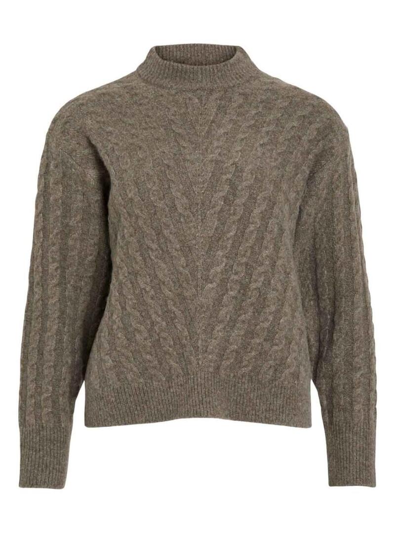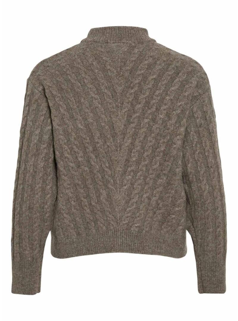 Maglia Vila. Colore tostato. Tessuto morbido a maglia intrecciata. Manica lunga. Spalle cadenti. Collo rotondo. Taglio regolare. Collo alto. Il modello indossa la taglia S.