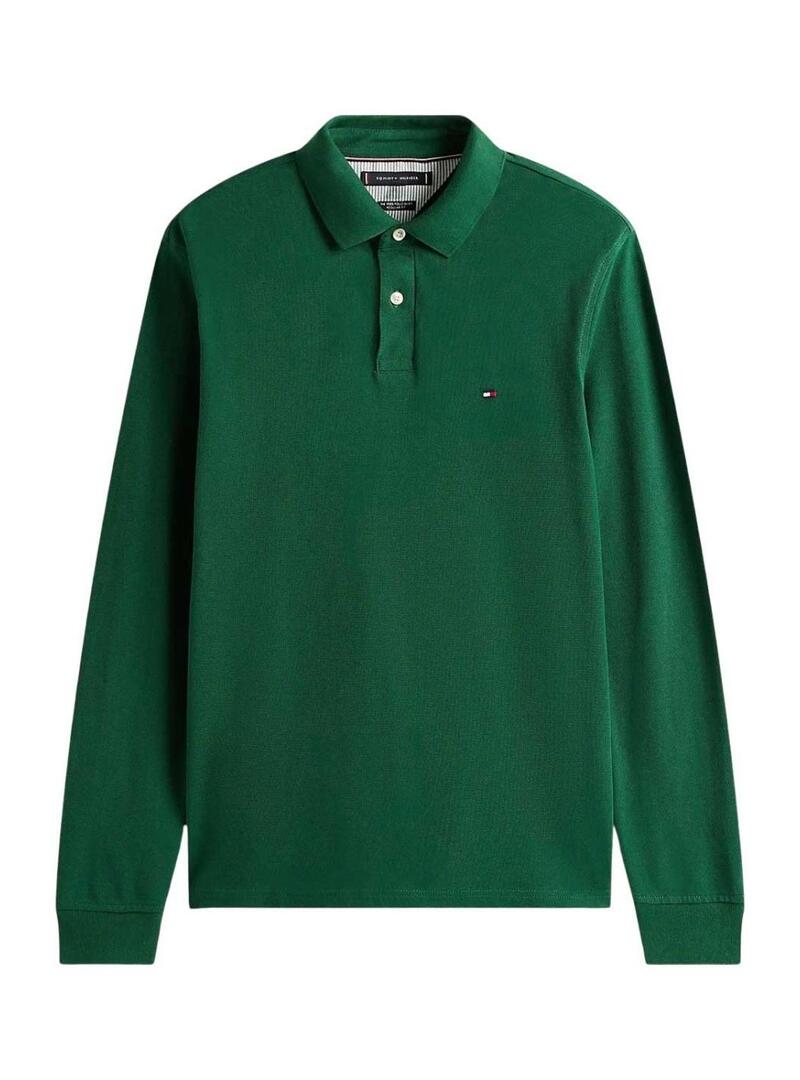 Polo Tommy Hilfiger. Modello 1985. Colore verde. Colletto con due bottoni. Logo ricamato sul petto. Manica lunga con polsini elasticizzati. Vestibilità regolare. Tessuto con elastan.