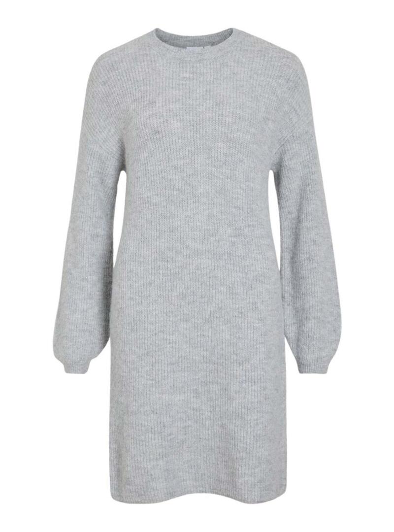 Abito Vila. Colore grigio. Lunghezza midi. Tessuto a maglia. Manica lunga. Collo rotondo. Spalle cadenti. Tessuto morbido e elastico. Taglio regolare. La modella indossa la taglia S.
