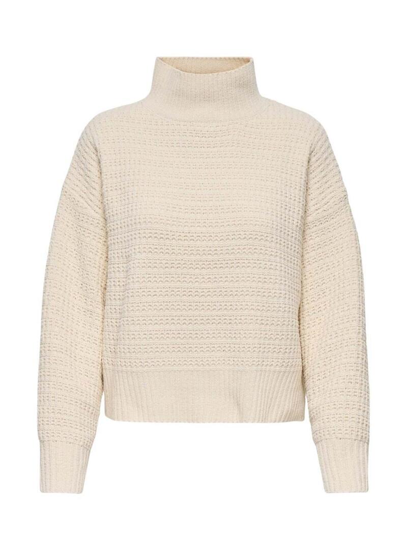 Maglia Only. Colore beige. Collo alto. Manica lunga. Spalle cadenti. Orli a costine. Taglio regolare. La modella indossa la taglia S.