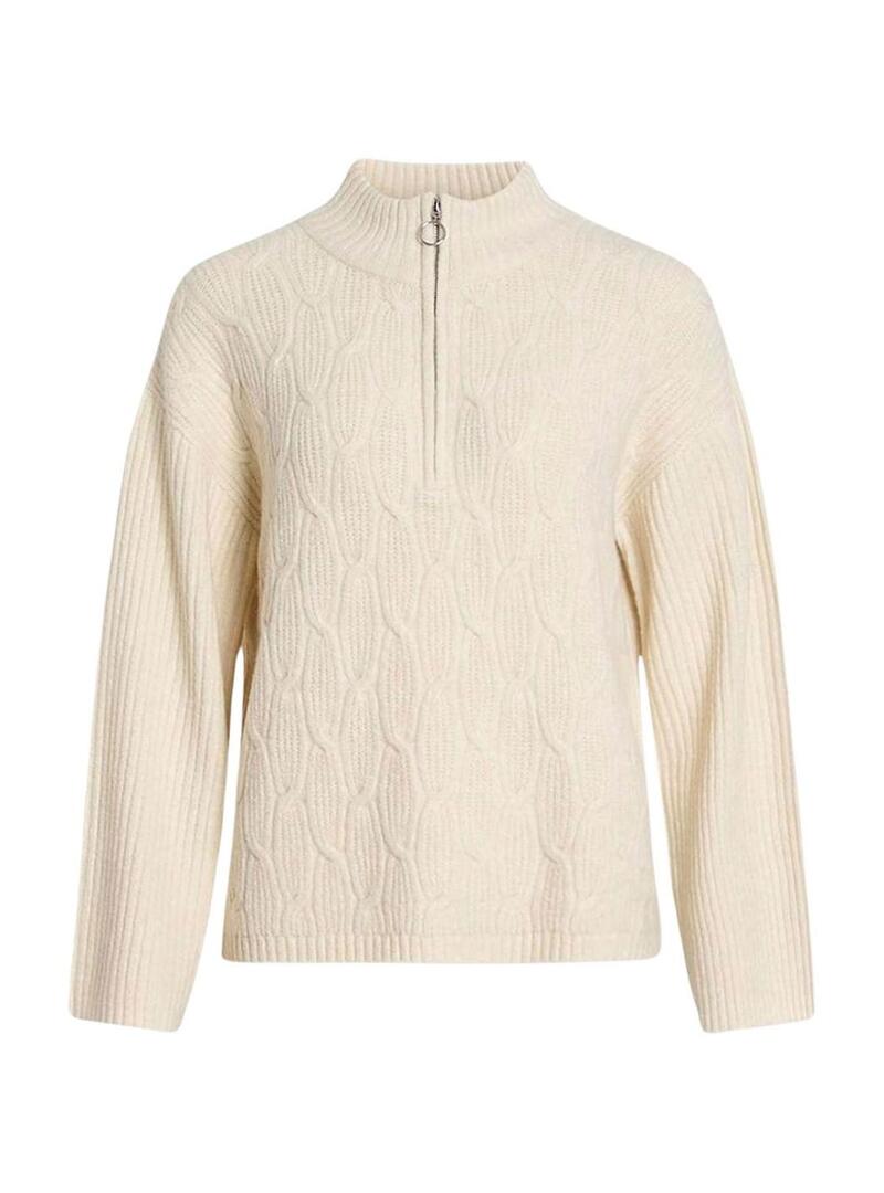 Maglione Vila Vilassia beige con zip sul collo per donna