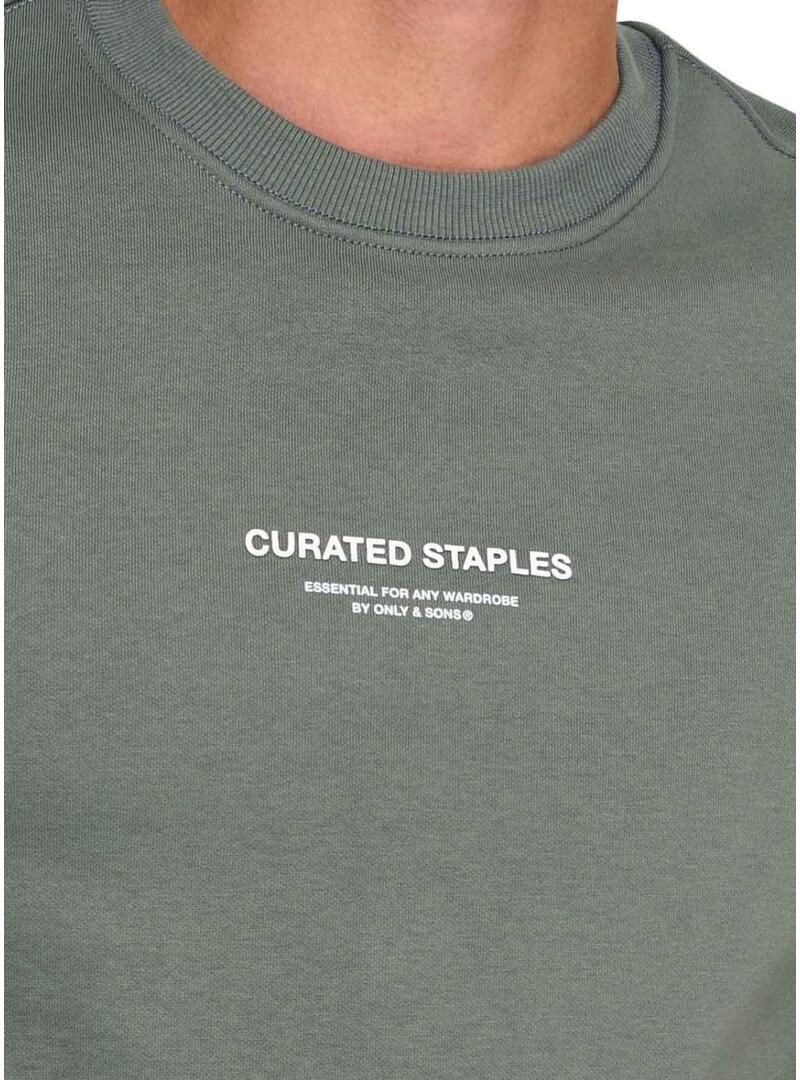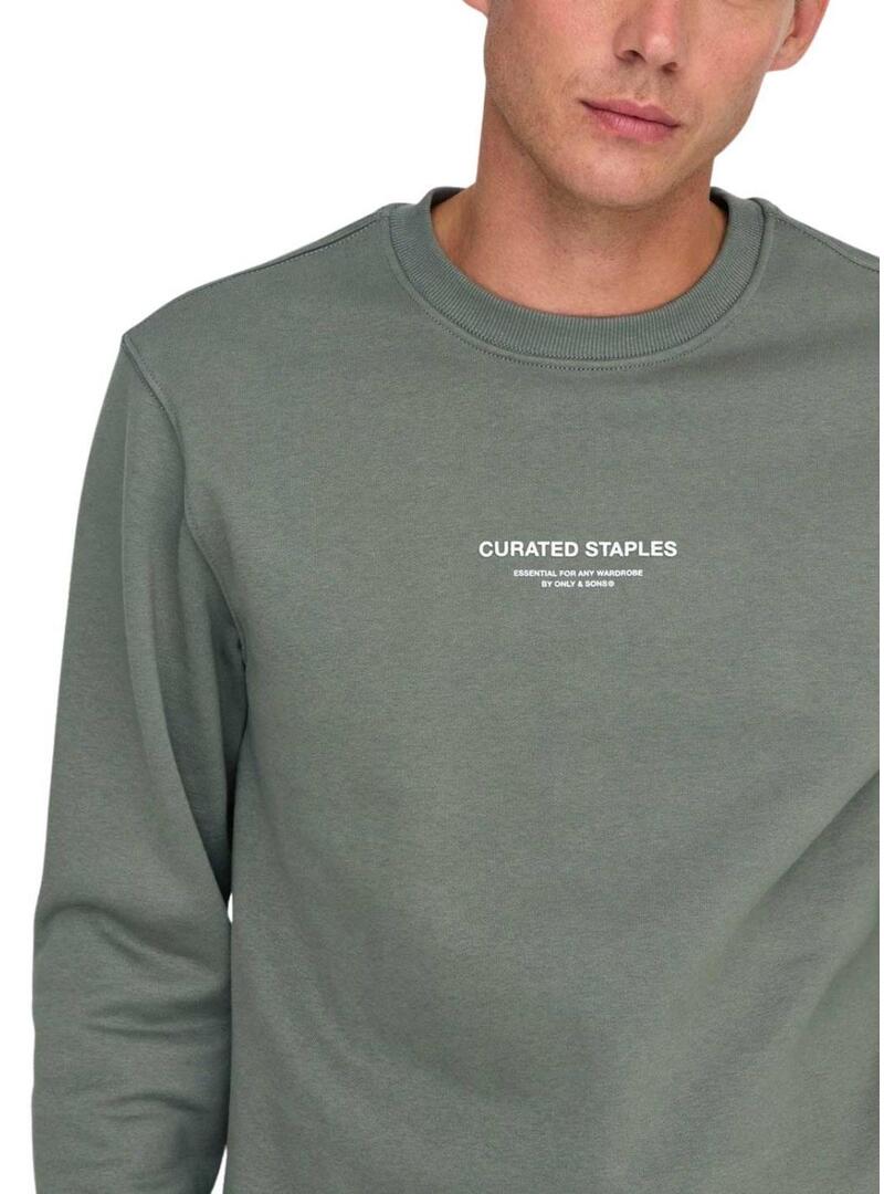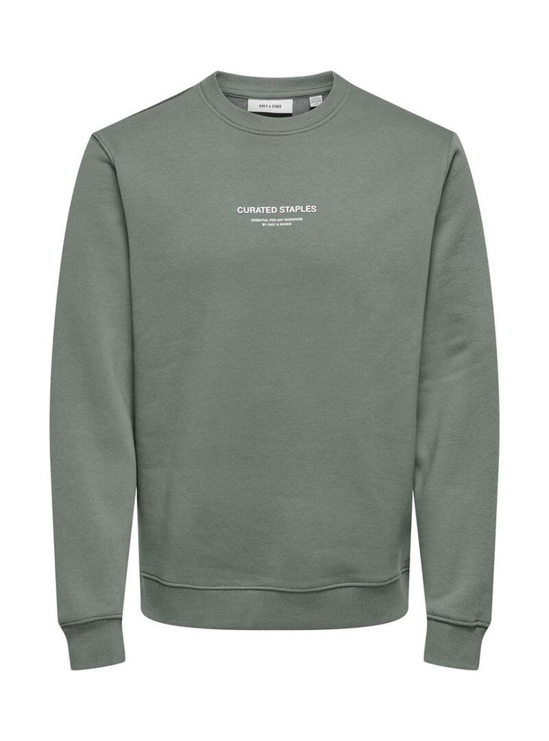 Felpa Only and Sons Curated Crew verde per uomo