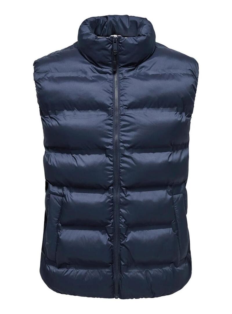 Gilet Only and Sons. Tessuto trapuntato. Chiusura anteriore con zip. Tasche laterali. Collo alto. Colore blu navy. Taglio regolare.