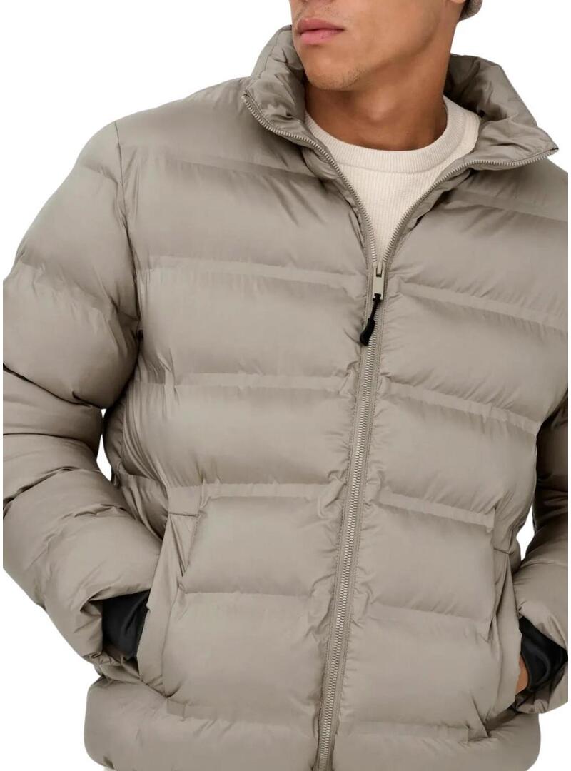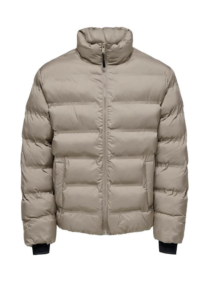 Giacca Only and Sons. Tessuto trapuntato. Colore beige. Manica lunga. Chiusura anteriore con zip. Tasche laterali. Collo alto. Vestibilità regolare. Idrorepellente.