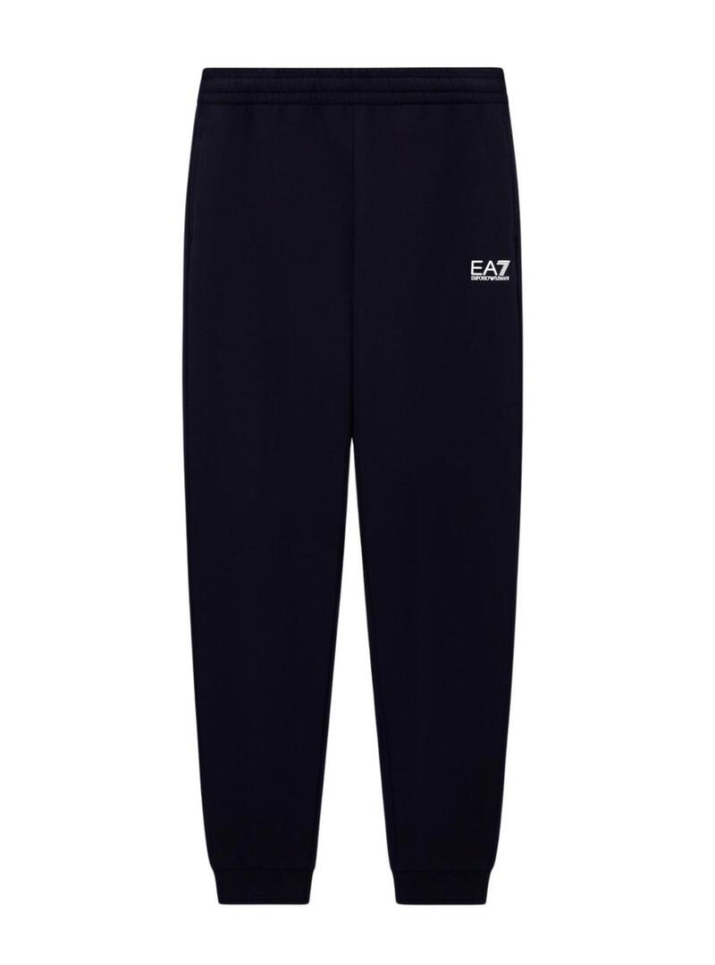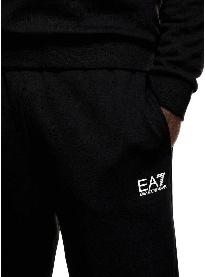 Pantaloni da tuta Emporio Armani EA7. Colore nero. Taglio aderente. Logo EA7 stampato in contrasto sulla gamba destra. Vita elasticizzata. Tasche laterali. Stile sportivo.