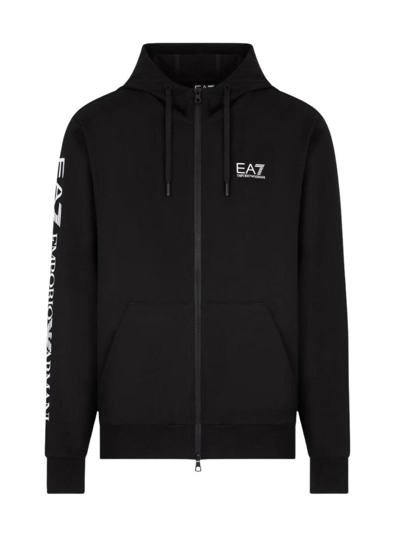 Giacca Emporio Armani EA7 nera con cappuccio e zip per uomo.
