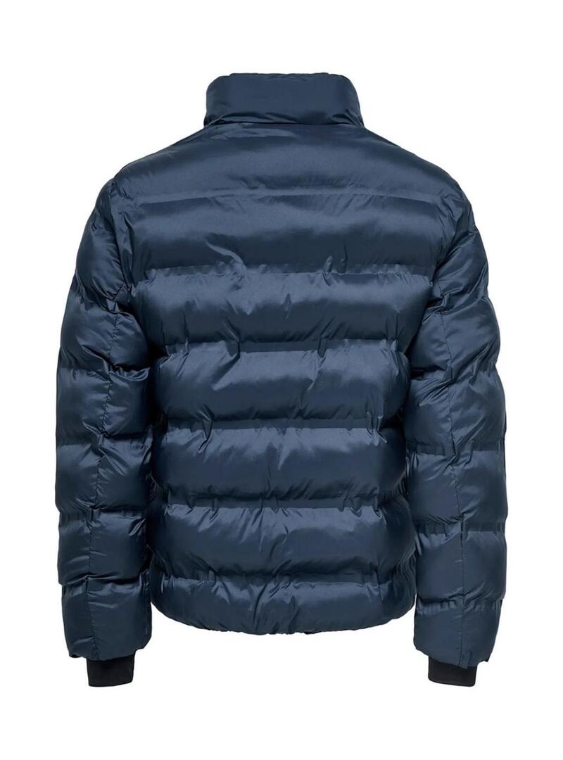 Cappotto Only and Sons. Tessuto trapuntato. Colore navy. Manica lunga. Lunghezza corta. Chiusura con zip. Tasche laterali con bottoni. Collo alto. Vestibilità regolare. Idrorepellente.
