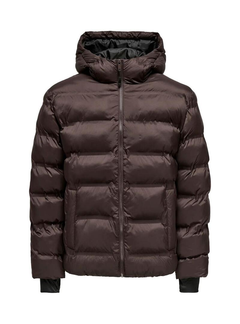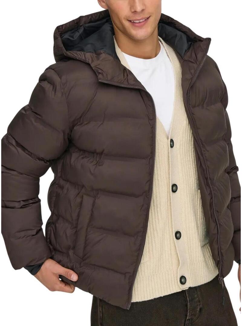 Giacca imbottita con cappuccio marrone per uomo Only and Sons Union