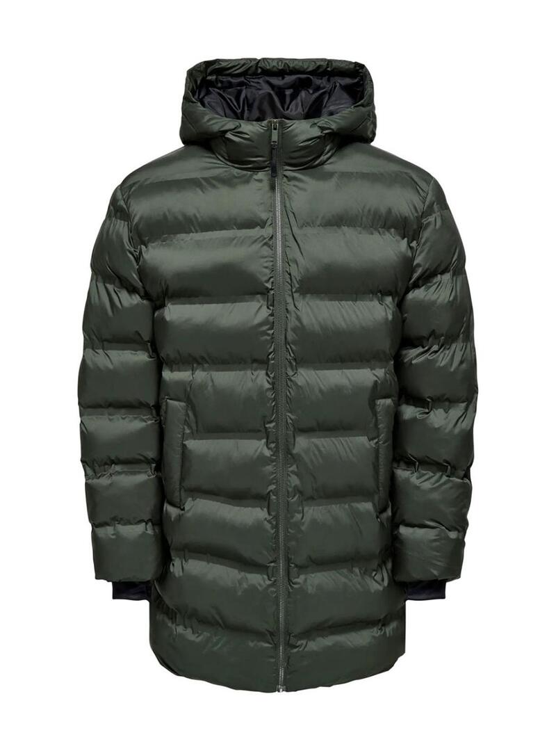 Giacca imbottita Only and Sons Union con cappuccio verde per uomo