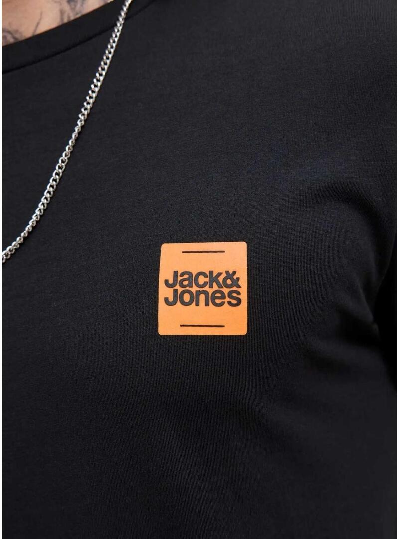 Maglietta Jack and Jones. Modello Brandy. Colore nero. Manica corta. Logo stampato sul petto con dettagli in colore arancione. Vestibilità regolare.