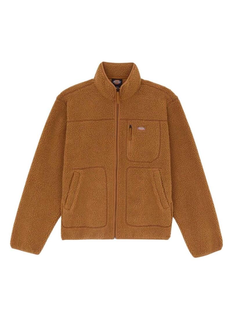 Felpa Dickies. Modello Mount Hope. Colore cammello. Chiusura anteriore con zip. Collo alto. Spalle cadenti. Etichetta ricamata sul petto. Due tasche anteriori. Una tasca sul petto con zip. Polsini e fondo elastici. Vestibilità regolare.