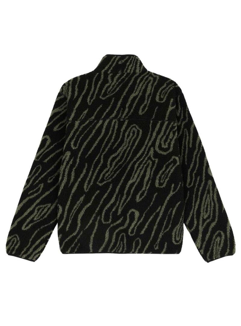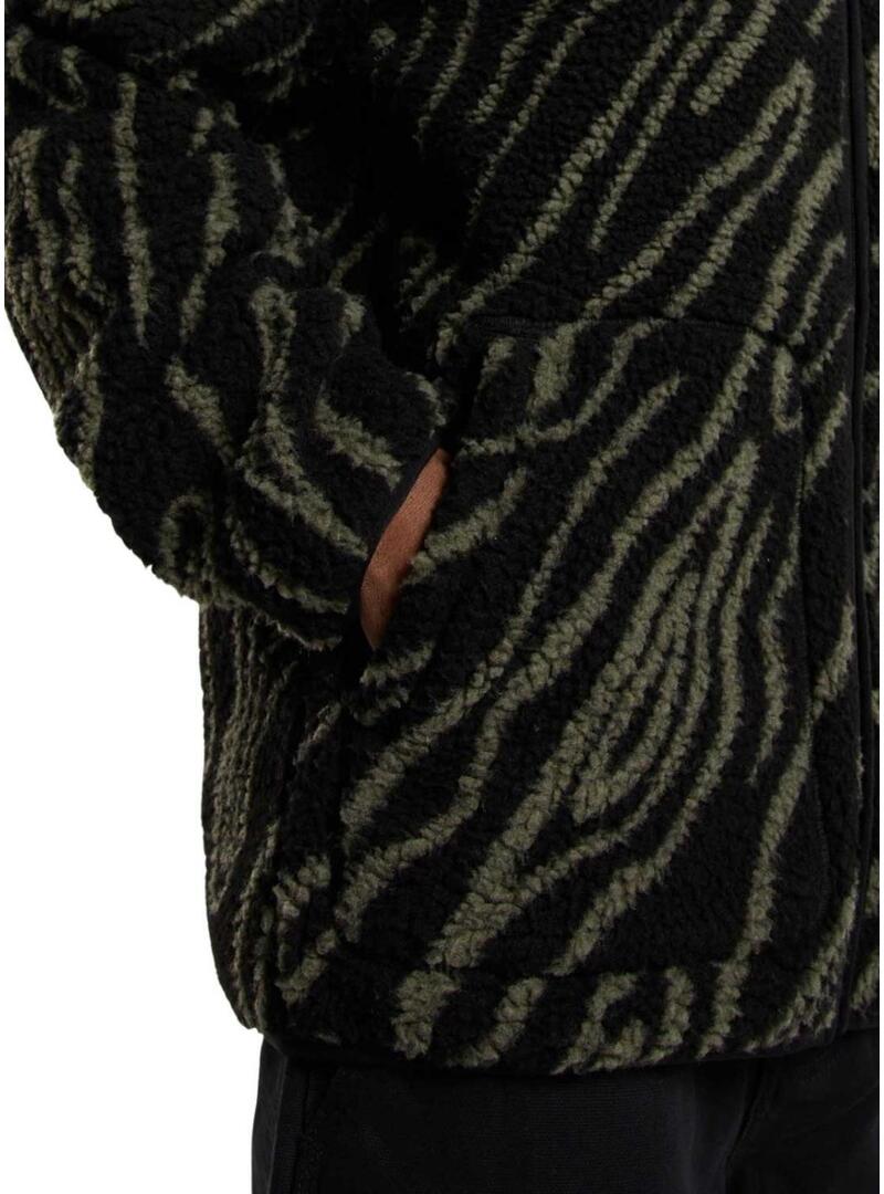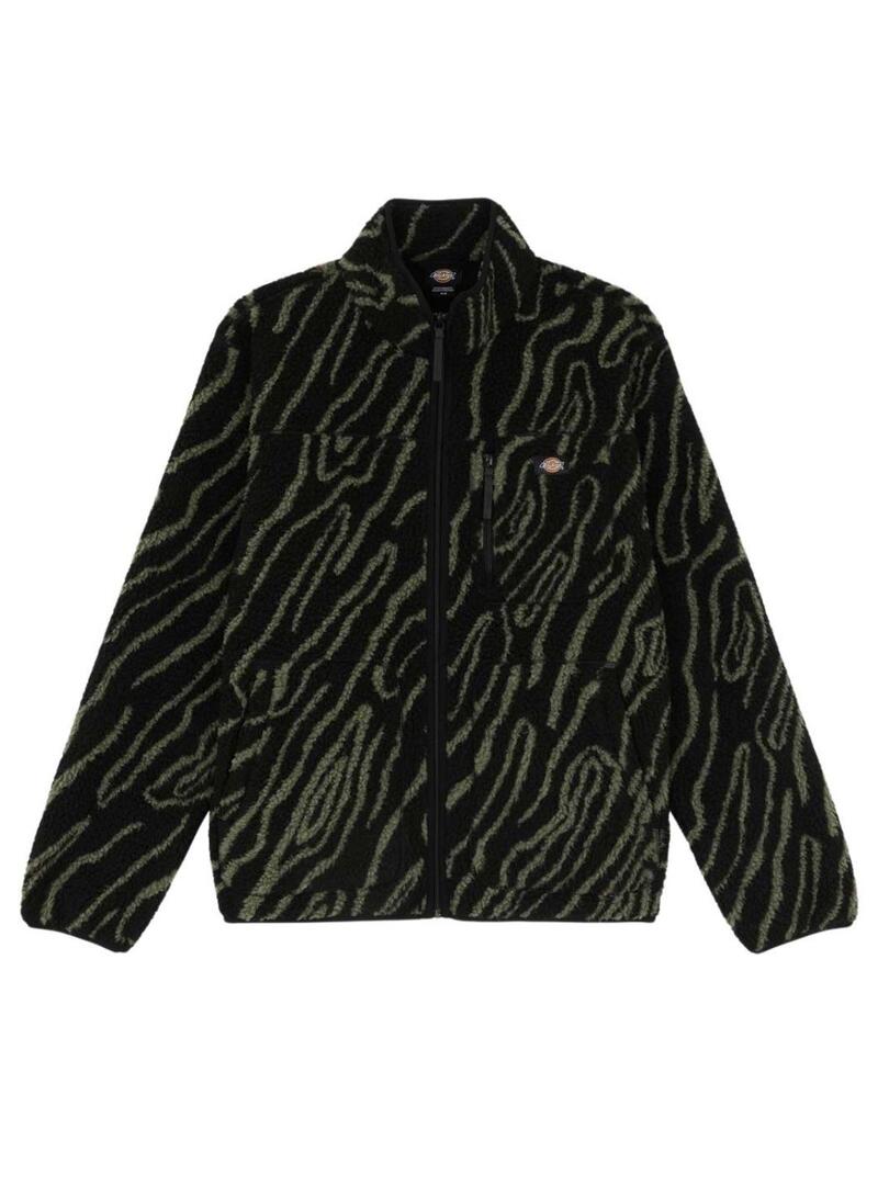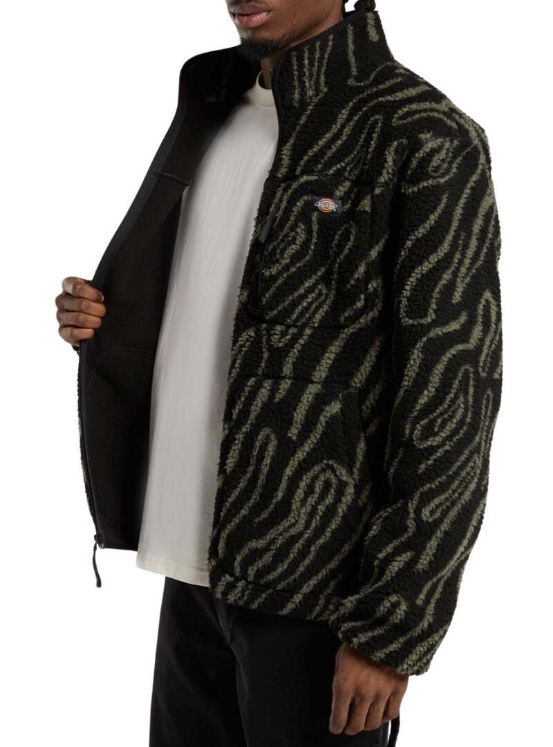 Fleece Dickies. Modello Mount Hope. Colore nero. Stampato in verde. Chiusura con zip. Colletto alto. Spalle cadenti. Etichetta ricamata sul petto. Due tasche anteriori. Una tasca sul petto con zip. Polsini ed orli elasticizzati. Taglio regolare. Tessuto morbido e caldo.