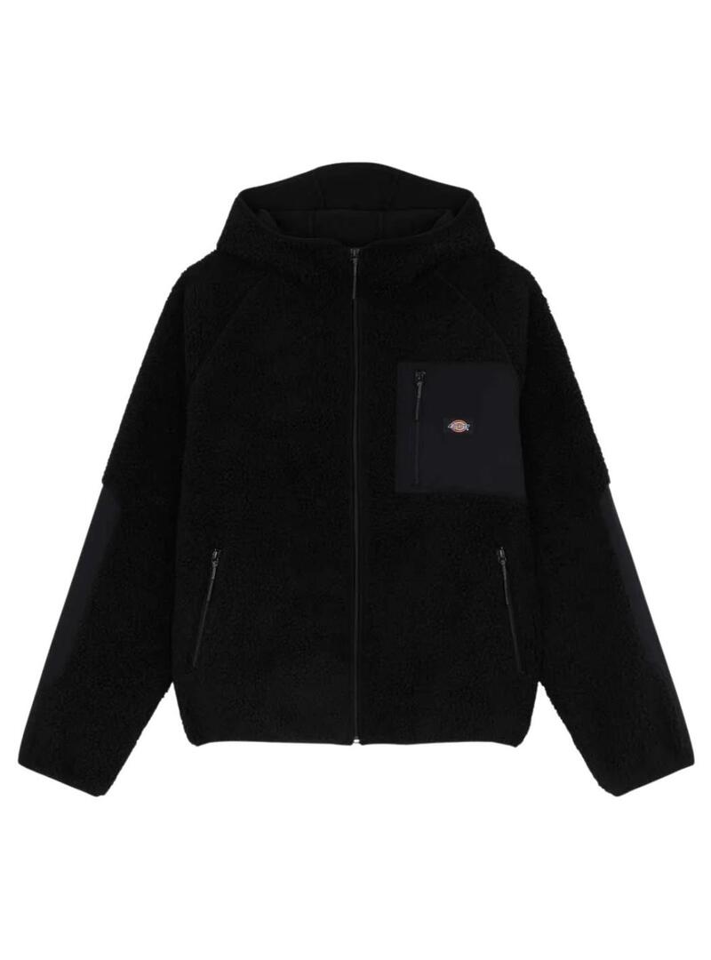Felpa Dickies. Colore nero. Con cappuccio. Chiusura con zip. Collo alto. Rinforzi in nylon sui gomiti. Una tasca in nylon con zip sul petto. Maniche raglan. Etichetta tessuta di Dickies sulla tasca sul petto. Tasche laterali con zip. Tessuto spesso. Taglio squadrato.