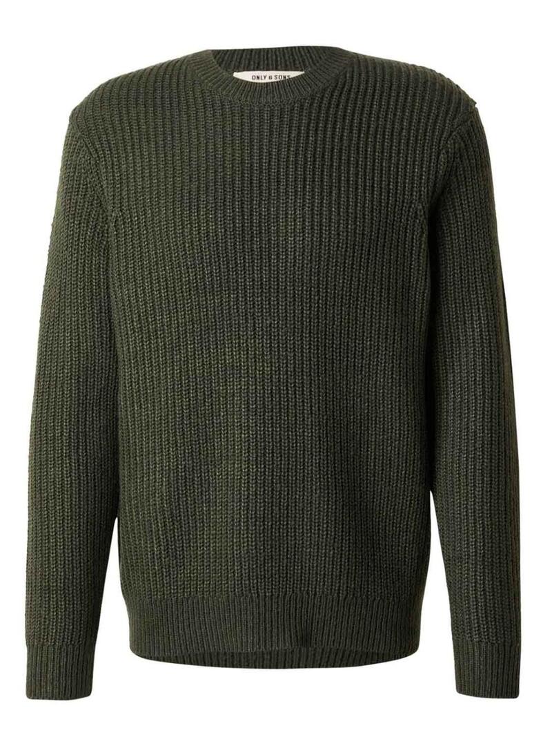 Maglia Only ans Sons. Girocollo. Manica lunga. Colore verde. Maglia a maglia testurizzata. Finiture a coste. Fit rilassato. Il modello indossa la taglia M.