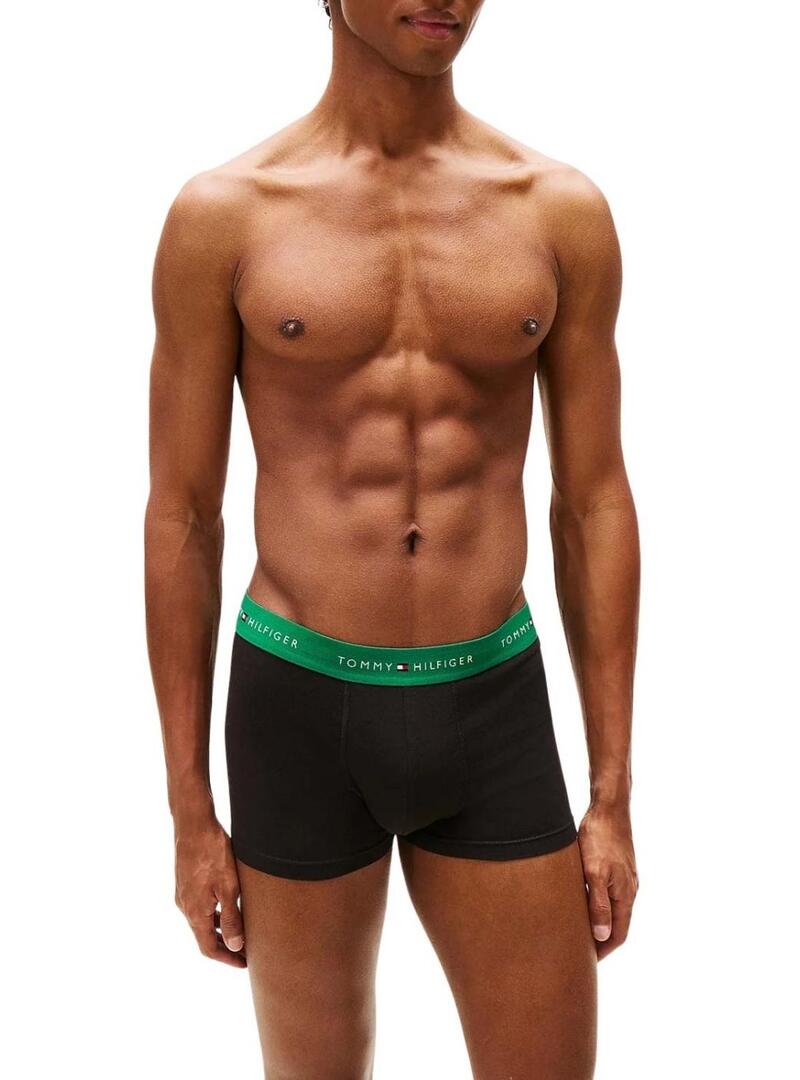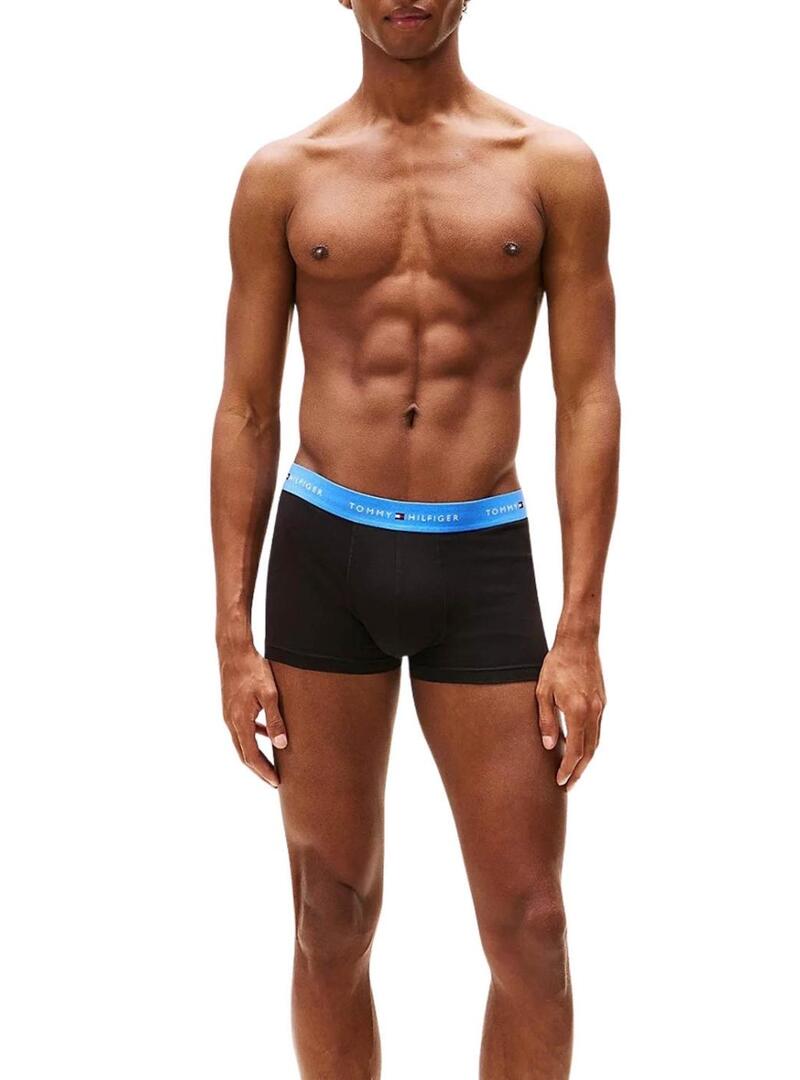 Confezione di mutande Tommy Hilfiger. Modello Trunk. Tre unità. Colore nero. Logo di Tommy Hilfiger in vita. Vita elastica a colori vari. Tessuto in cotone elasticizzato. Il modello indossa la taglia M.