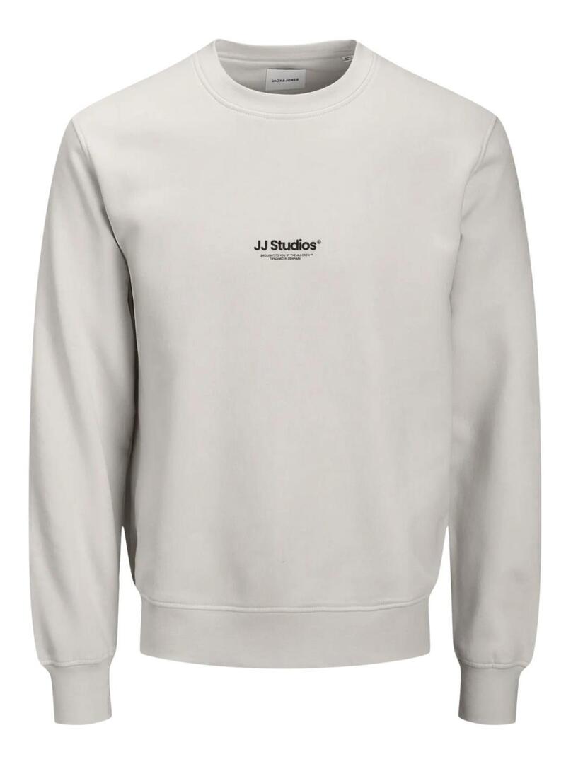 Felpa Jack and Jones. Modello Soho. Colore beige. Collo rotondo. Orli a costine. Vestibilità oversize. Logo JJ Studios stampato sul petto in contrasto.