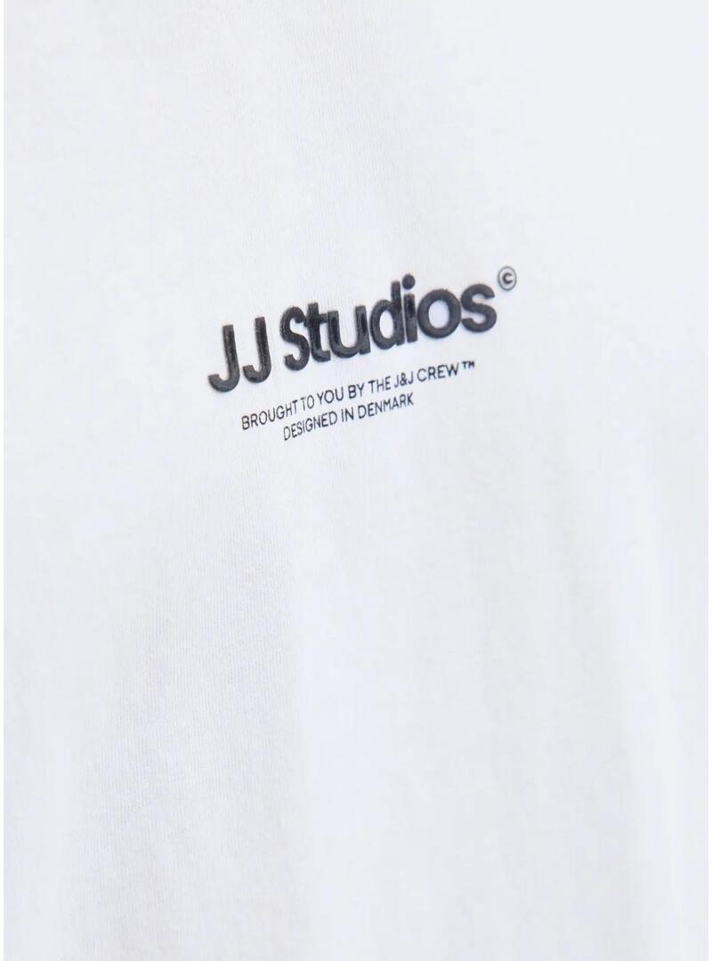 Maglietta Jack and Jones. Modello Soho. Colore bianco. Manica corta. Vestibilità ampia. Girocollo. Logo JJ Studios stampato sul petto.