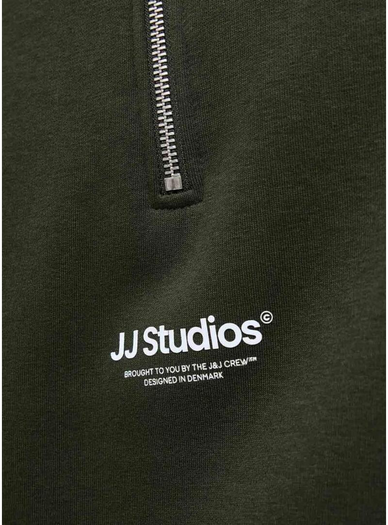 Felpa Jack and Jones. Modello Soho. Colore verde. Collo alto con zip. Orli a costine. Vestibilità regolare. Marchio stampato sul davanti.
