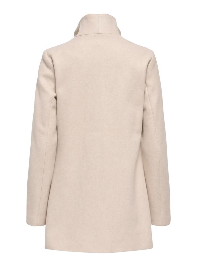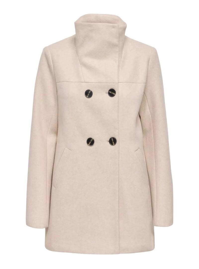 Cappotto Only. Colore beige. Maniche lunghe. Collo alto. Taglio regolare. Chiusura anteriore a doppiopetto. Tasche laterali. La modella indossa la taglia S.