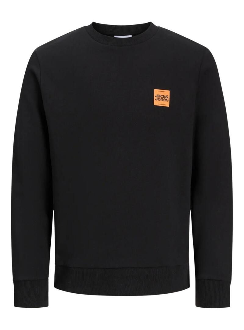 Felpa Jack and Jones. Modello Brandy. Colore nero. Collo rotondo. Vestibilità regolare. Stile basic. Orli a costine. Logo stampato sul petto a forma di scatola. Dettagli arancioni.
