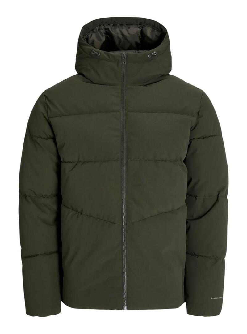 Giubbotto Jack and Jones. Modello Global. Colore verde. Colletto alto. Chiusura con zip. Cappuccio regolabile con elastico e lacci. Tasche laterali. Tessuto trapuntato. Stile basic.
