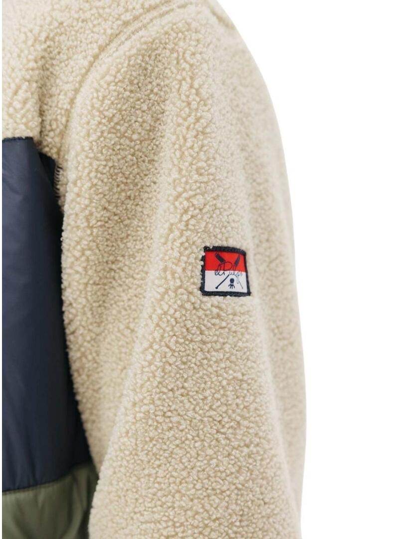Giacca El Pulpo. Tessuto misto nylon e montone. Colore verde, blu scuro e beige. Manica lunga. Tasche laterali con zip. Tasca sul petto con zip. Vestibilità regolare. Il modello indossa la taglia L.