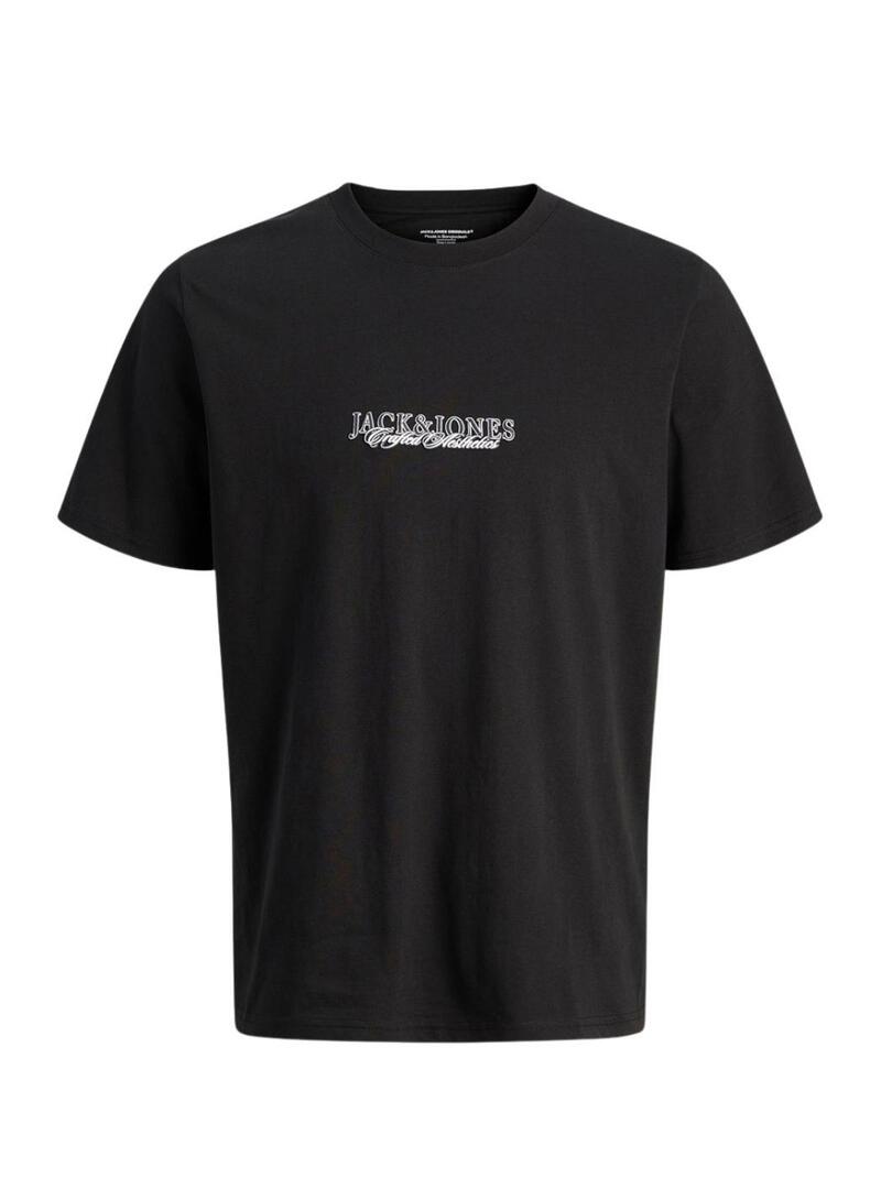 Maglietta Jack and Jones. Modello Bleecker. Colore nero. Collo rotondo. Manica corta. Vestibilità regolare. Logo stampato sul petto. Dettagli in colore bianco.