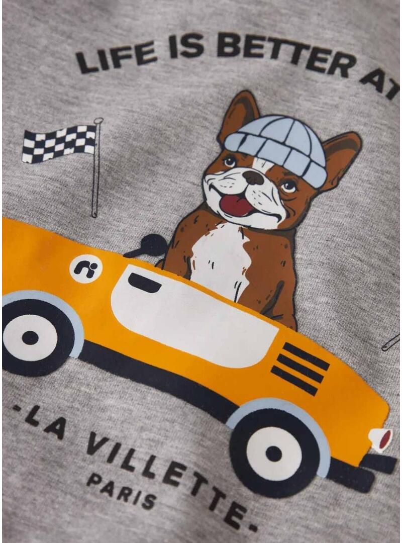 Felpa Name It. Modello Roval. Colore grigio. Collo rotondo. Manica lunga. Orli a costine. Vestibilità regolare. Illustrazione di una gara stampata sul davanti.