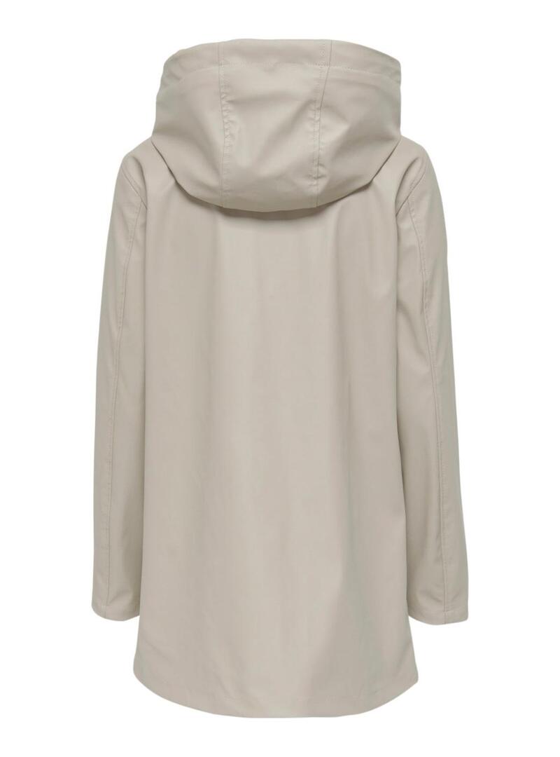 Impermeabile Only. Colore beige. Maniche lunghe. Collo alto con cappuccio regolabile. Chiusura frontale con bottoni. Tasche frontali con patta e bottone. Taglio regolare.