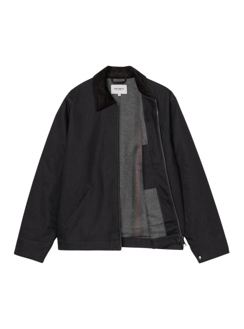 Giacca Carhartt. Modello Detroit. Colore blu scuro. Taglio dritto. Chiusura anteriore con zip bidirezionale. Colletto in contrasto di velluto a coste. Etichetta del marchio sul petto. Tasche laterali. Tessuto foderato stampato all'interno. Tasca sul petto con zip. Tasca interna. Fodera morbida e vellutata.