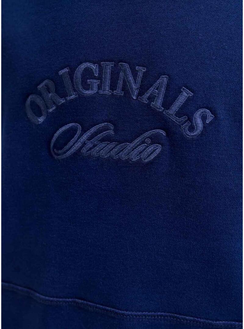 Felpa Jack and Jones. Modello Bleecker. Colore blu. Logo ricamato in tinta. Orli a costine. Con cappuccio. Vestibilità regolare. Tasca a marsupio.