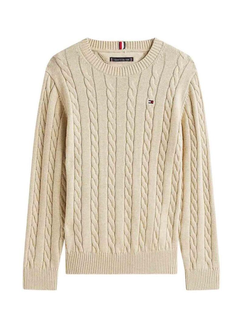 Maglione Tommy Hilfiger. Modello Cable. Colore beige. Collo rotondo. Manica lunga. Orli a costine. Vestibilità regolare. Maglia intrecciata. Logo ricamato sul petto. Stile classico.
