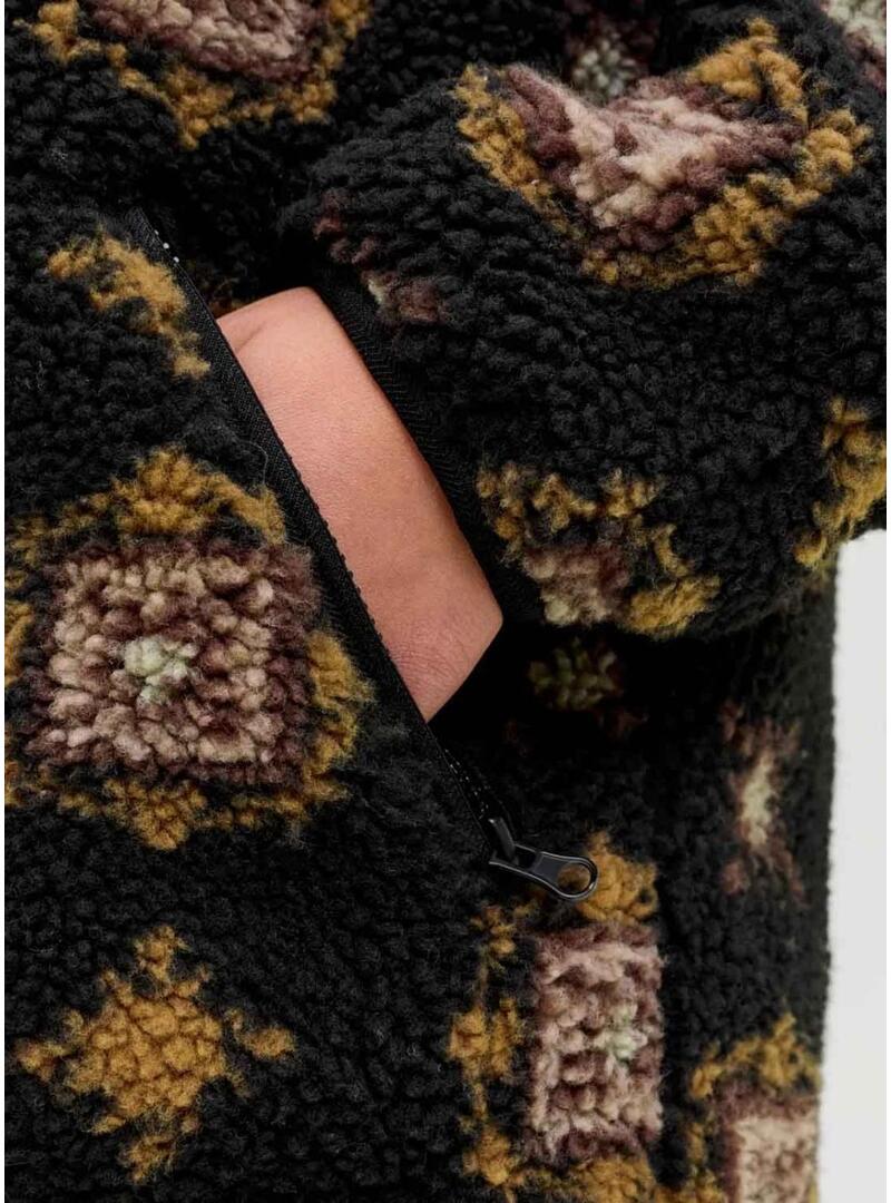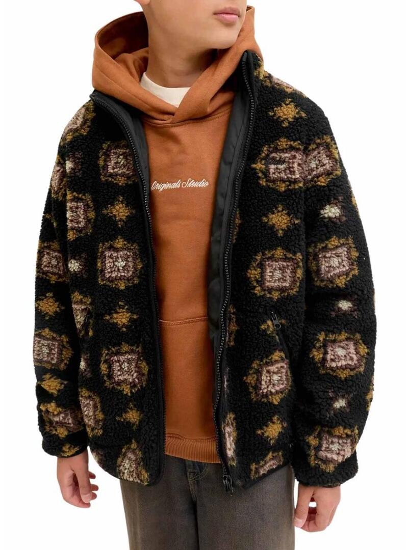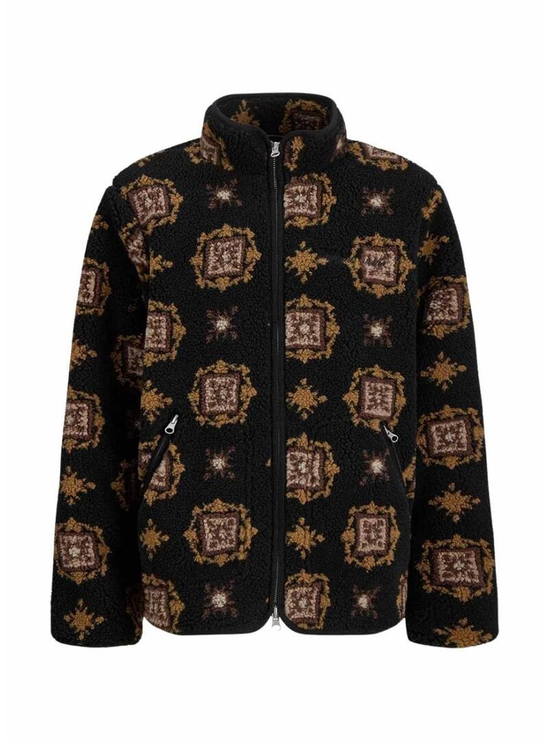 Giacca Jack and Jones. Modello Norrebro. Colore nero. Stampa etnica nei toni del cammello. Chiusura con zip. Collo alto. Tasche laterali. Tessuto di peluche. Vestibilità ampia.