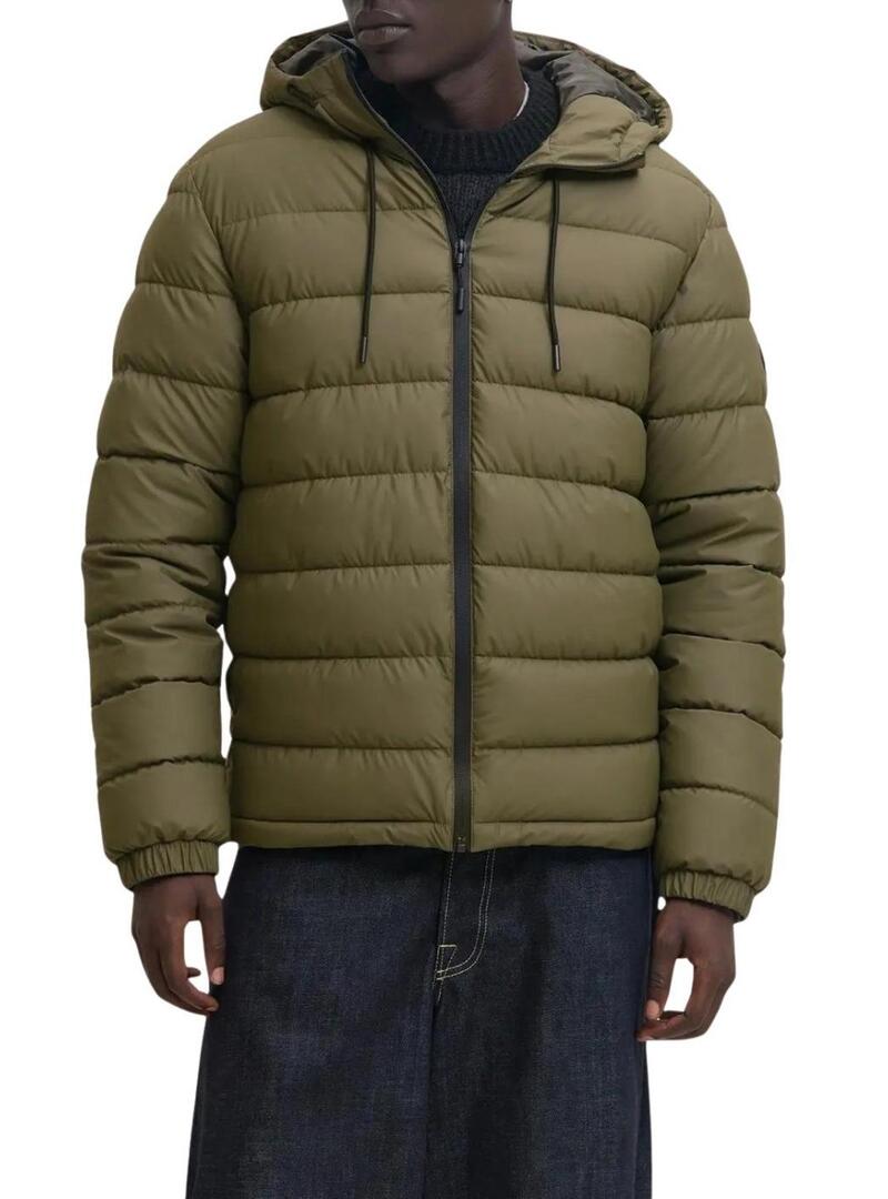 Giubbotto Jack and Jones. Colore verde. Chiusura con zip. Tessuto trapuntato. Polsini elastici. Tasche laterali. Con cappuccio regolabile con lacci. Logo marchio in gomma su una manica. Il modello indossa la taglia L.