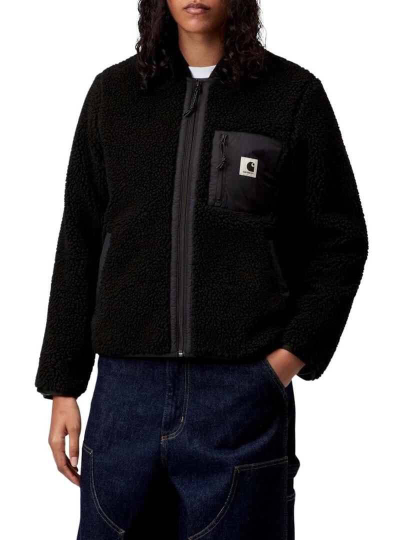Giacca Carhartt. Realizzata in pile. Colore nero. Dettagli in nylon. Tasca sul petto con zip e etichetta Carhartt WIP. Fodera in nylon. Colletto a costine. Manica lunga. Taglio corto. Chiusura frontale con zip. Tasche laterali. La modella indossa la taglia S.