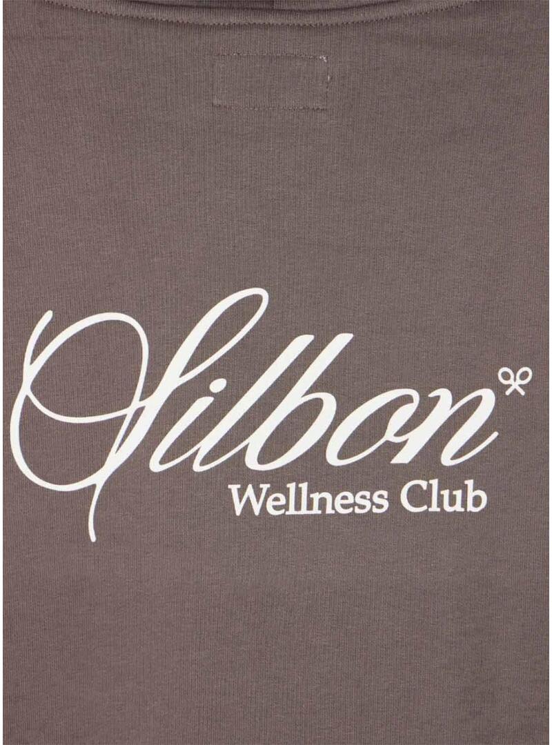 Felpa Silbon. Colore marrone. Vestibilità regolare. Con cappuccio. Maniche lunghe. Stampa delle lettere Wellness club sulla schiena. Ricamo sul petto.