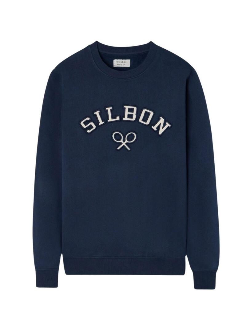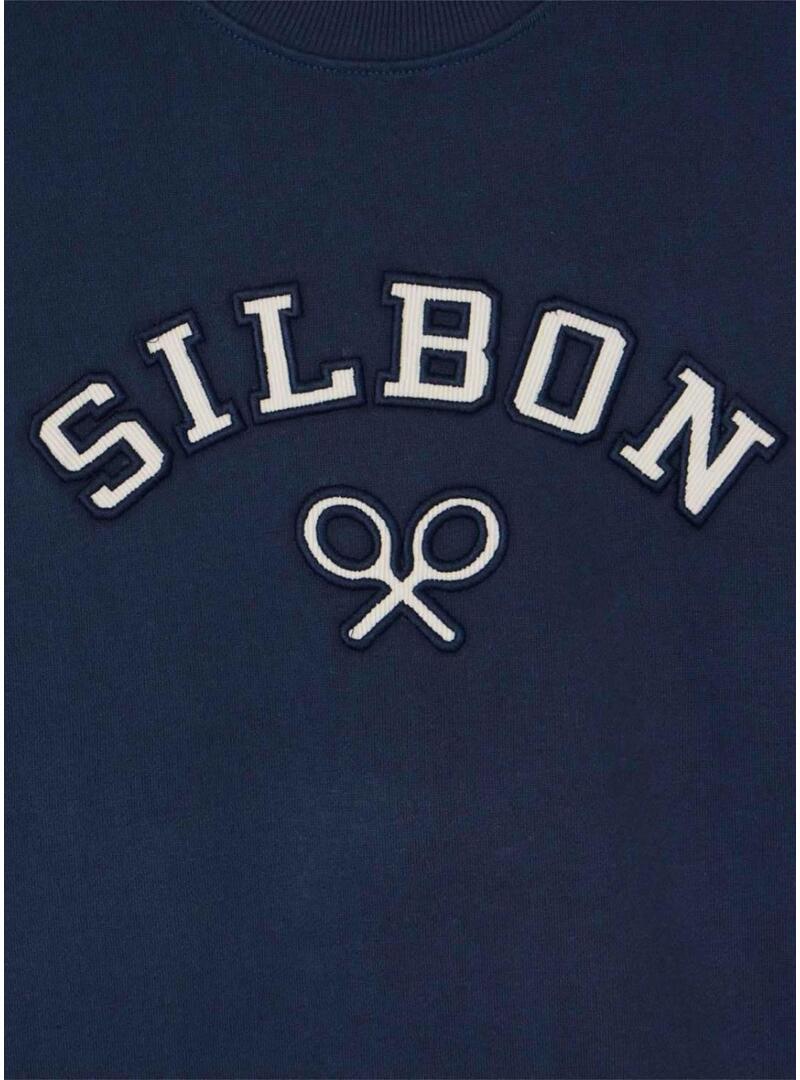 Felpa Silbon. Colore blu navy. Taglio regolare. Collo rotondo. Manica lunga. Stampa delle lettere Silbon e racchette di panno sul petto. Il modello indossa la taglia M.