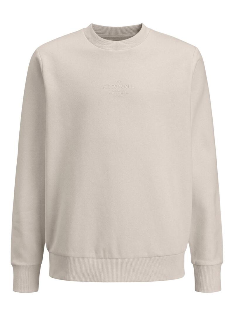 Felpa Jack and Jones. Modello Jin. Colore beige. Collo rotondo. Maniche lunghe. Orli a costine. Vestibilità regolare. Messaggio Studio Coll stampato in tinta sul petto.