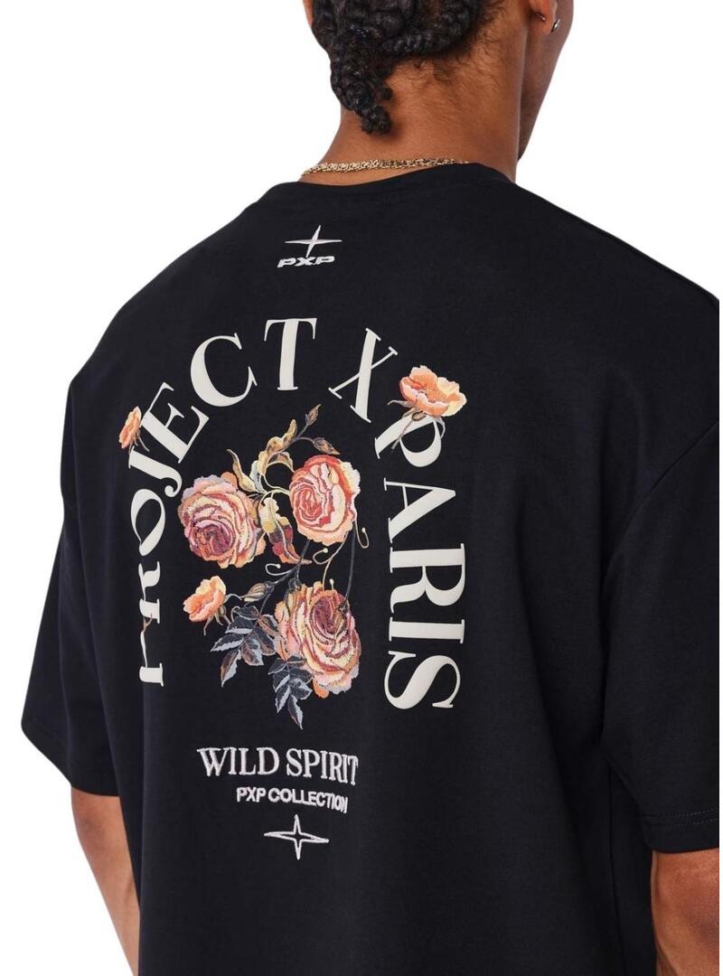 Maglietta Project x Paris. Modello Roses. Colore nero. Collo rotondo. Manica corta. Vestibilità ampia. Logo stampato sul petto con rose. Illustrazione sul retro.