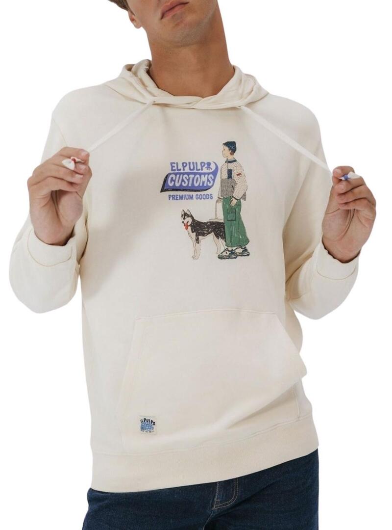 Felpa El Pulpo. Colore beige. Stampa Il Polpo Customs sul petto. Taglio regolare. Con cappuccio. Manica lunga. Tasca a marsupio. Il modello indossa la taglia L.