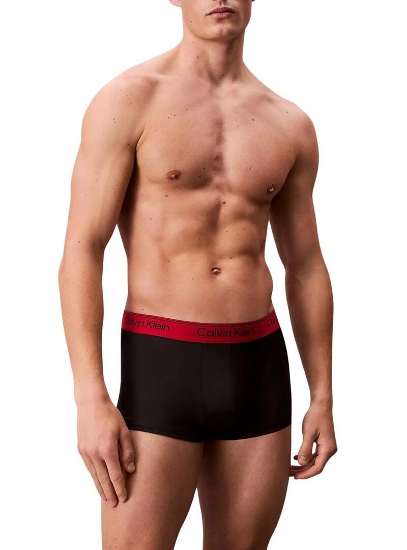 Boxer Calvin Klein. Pacco da 3 boxer. Colore nero. Tessuto in microfibra morbida per una migliore libertà di movimento. Vita Infinity Bond senza cuciture. Taglio aderente. Vita bassa. Vita di diversi colori: rosso, bianco e nero.