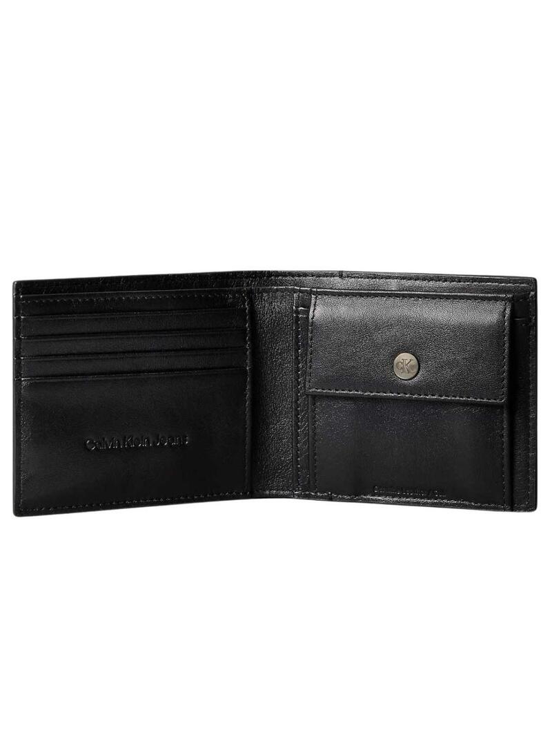 Portafoglio Calvin Klein. Colore nero. In pelle granulata. 5 slot per carte. 2 slot di sicurezza. Porta banconote diviso. Tasca portamonete. Tecnologia di protezione RFID. Misure: 9 x 21 x 2 cm. Monogramma di Calvin Klein inciso sulla parte anteriore.