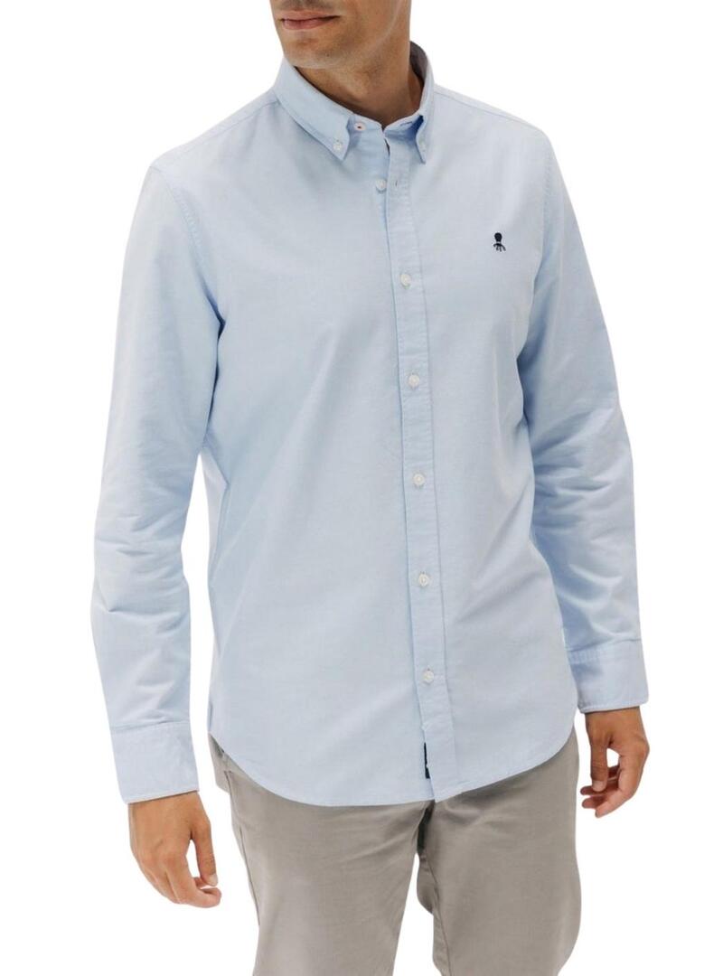 Camicia El Pulpo. Tessuto oxford. Colore blu. Colletto con bottoni. Logo a contrasto ricamato sul petto. Manica lunga. Il modello indossa la taglia L.