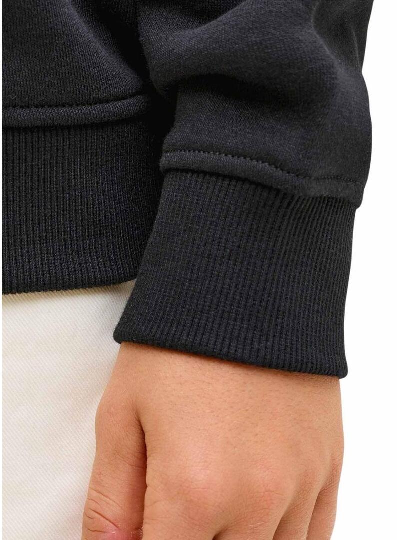 Felpa Jack and Jones. Modello Greene. Colore nero. Orli a costine. Taglio regolare. Manica lunga. Con cappuccio. Logo stampato a scatola sul petto.